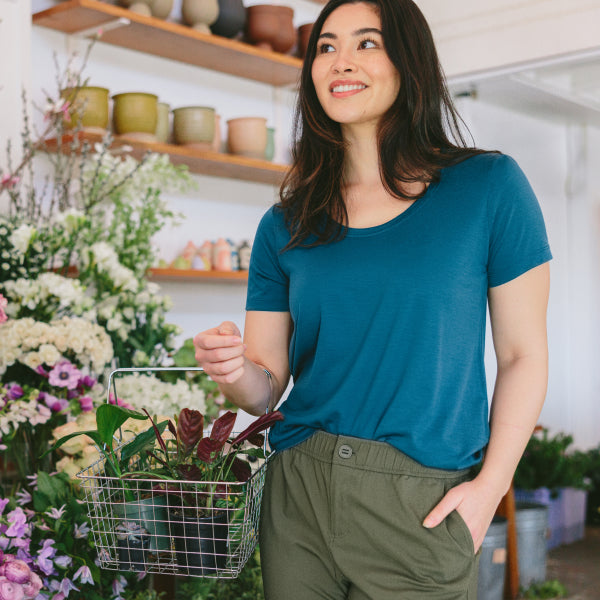With merino you can get more mileage between washes with a closet full of simple, versatile, and layerable items that go well together and can be worn in a variety of temperatures.