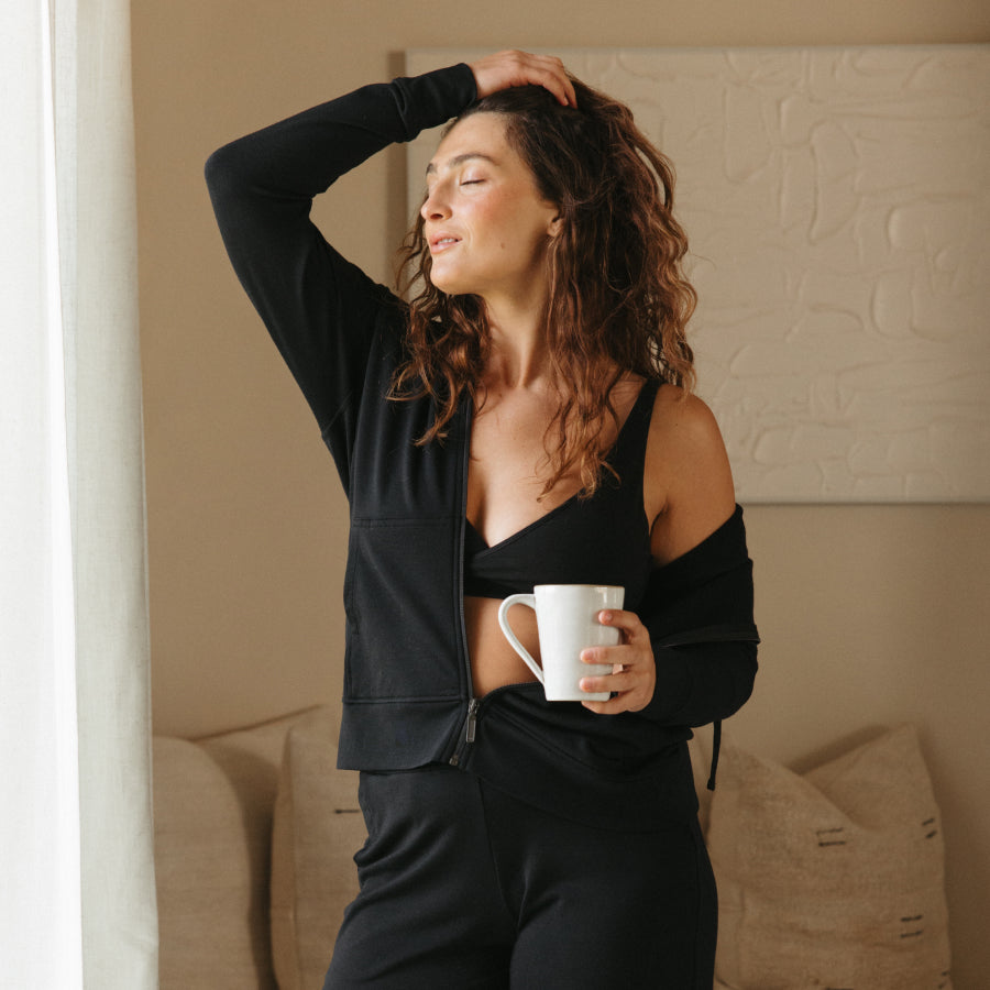 Midweight knit with a smooth outside and plush loops on the inside, like your softest sweatshirt. 75% merino wool, 22% nylon, 3% spandex. 235 gsm. All French Terry.