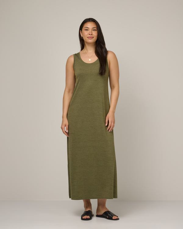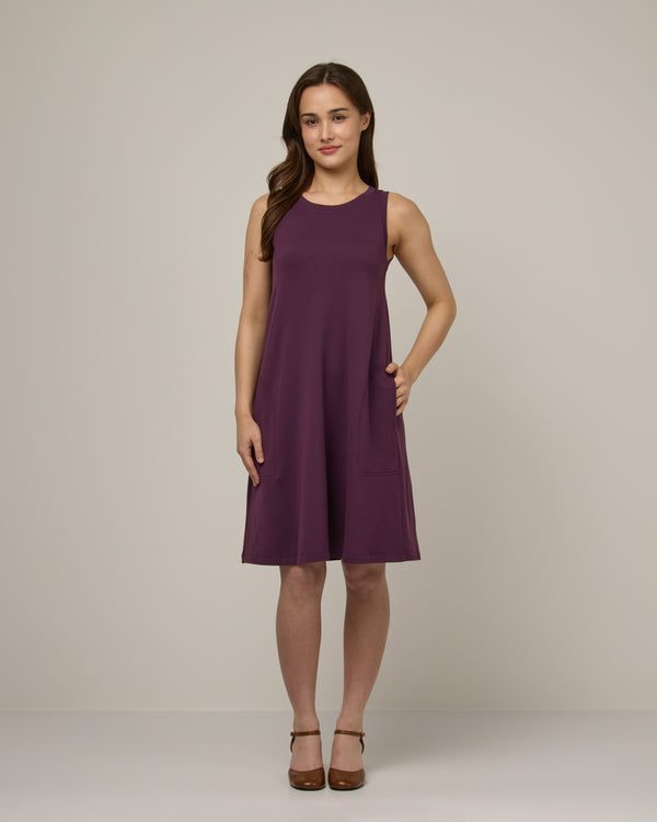 A sleeveless tank dress made with supersoft jersey fabric. Lightweight, in-seam pockets, merino blend, what more could one ask for?