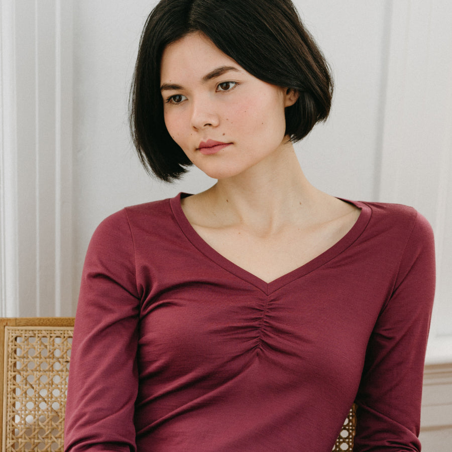 With sweet, subtle ruching at the neckline, the Melanie will become the cozy tee you reach for most.