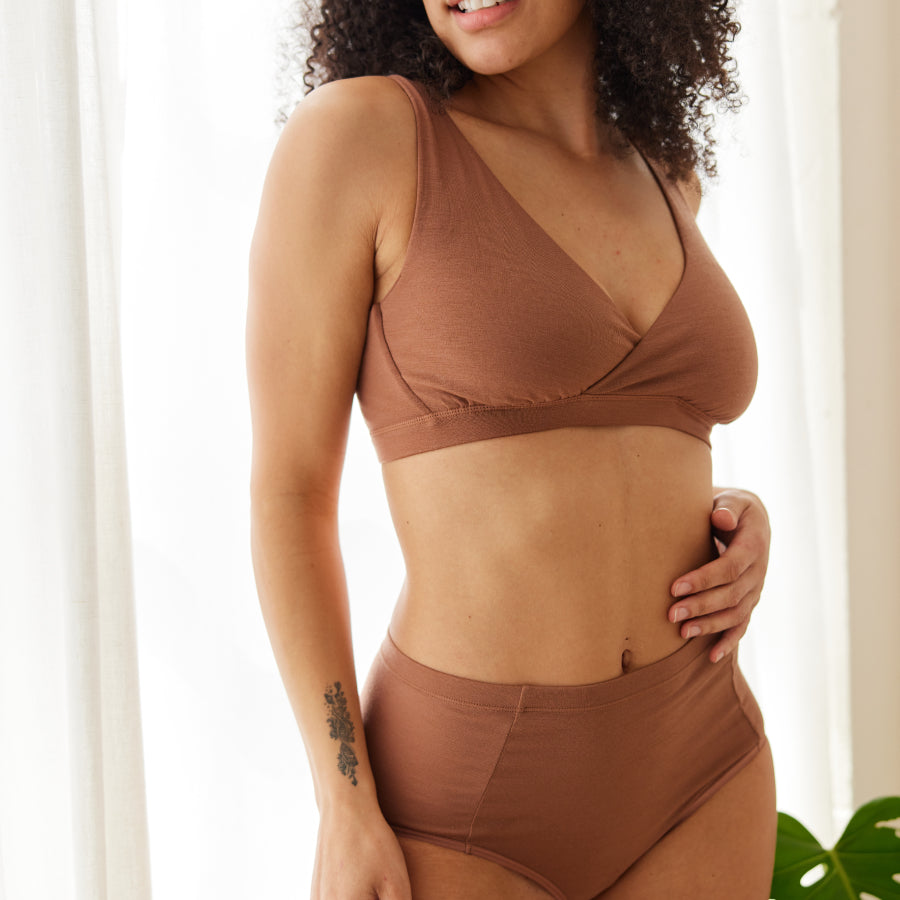 Our Roam underwear collection is designed to be both supportive and lightweight, with natural merino breathability. This pullover style with convertible straps will quickly become your most-loved bra. It is fully lined with our soft knit fabric, power mesh for added support, and space to add nursing pads.